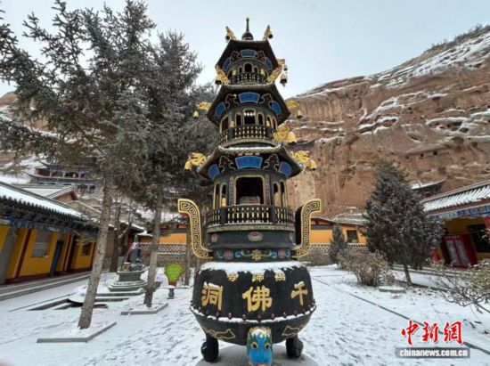 从北朝壁画中“梨车”供养人题记,到如今汉族社火、藏族锅庄与裕固族风情歌舞同台绽放,千年时光流转中,甘肃省张掖市肃南裕固族自治县马蹄寺石窟群,不仅镌刻着多元文化交融印记,更成为解锁多民族交往交流交融历史密码的重要载体。 2025年12月22日,马蹄寺石窟群千佛洞景区。