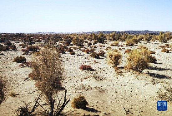 这是内蒙古巴彦淖尔市乌拉特后旗巴音查干嘎查牧民种植的梭梭(11月4日摄)。