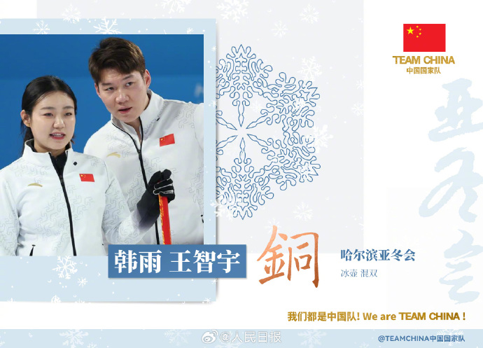 中国队首枚奖牌!韩雨/王智宇获得冰壶混双铜牌