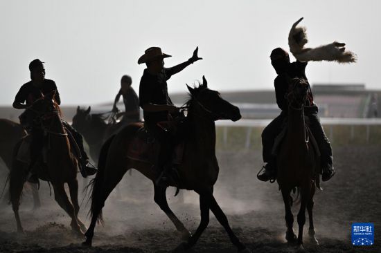 7月29日,骑手在新疆伊犁哈萨克自治州昭苏县天马旅游文化园表演叼羊。