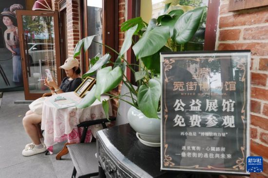 游客在位于哈尔滨市西十三道街的宽街博物馆门前“打卡”(9月3日摄)。