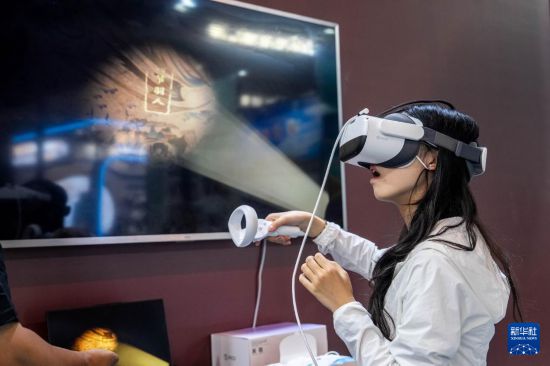 9月17日,观众在创意云南文化产业博览会上通过VR设备观赏莫高窟壁画。