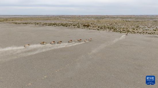 这是9月24日在甘肃敦煌西湖国家级自然保护区内拍摄的普氏野马(无人机照片)。新华社记者 郎兵兵 摄