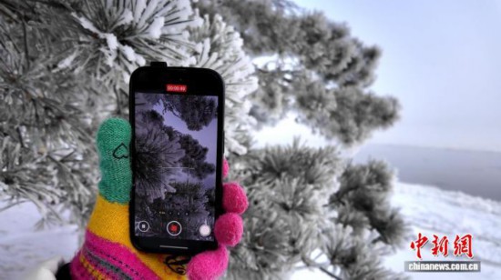 游客拍摄呼玛雾凇美景。 张宏宇 摄