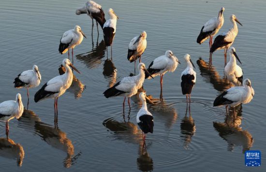 近日,大批东方白鹳飞抵河北省唐山市丰南区沿海湿地觅食、停留,形成一道靓丽的风景。