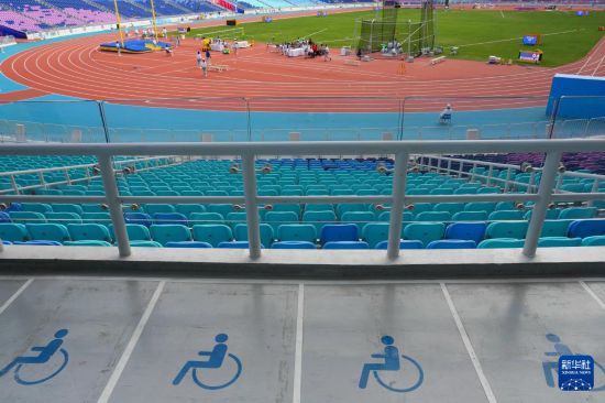 这是广东奥林匹克体育中心体育场看台区域的轮椅席位(12月7日摄)。