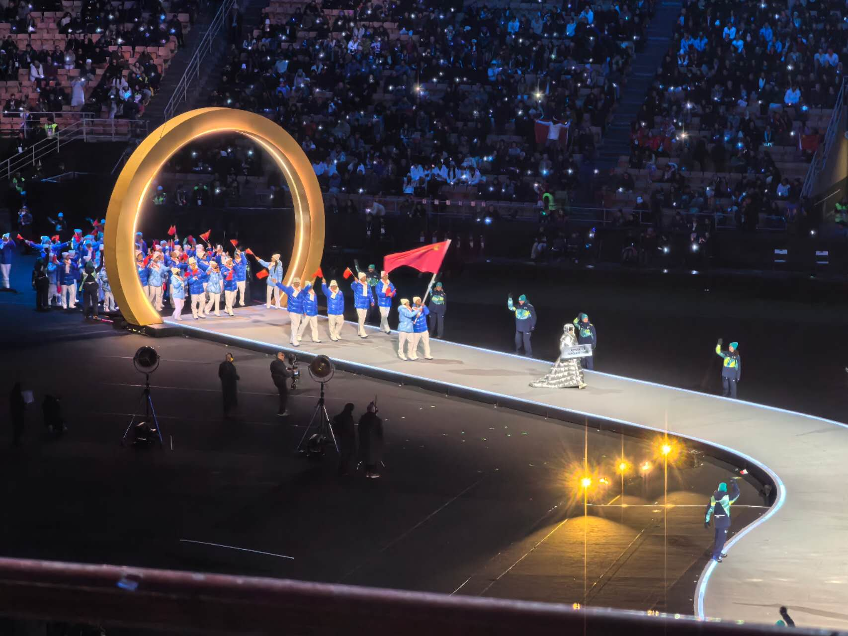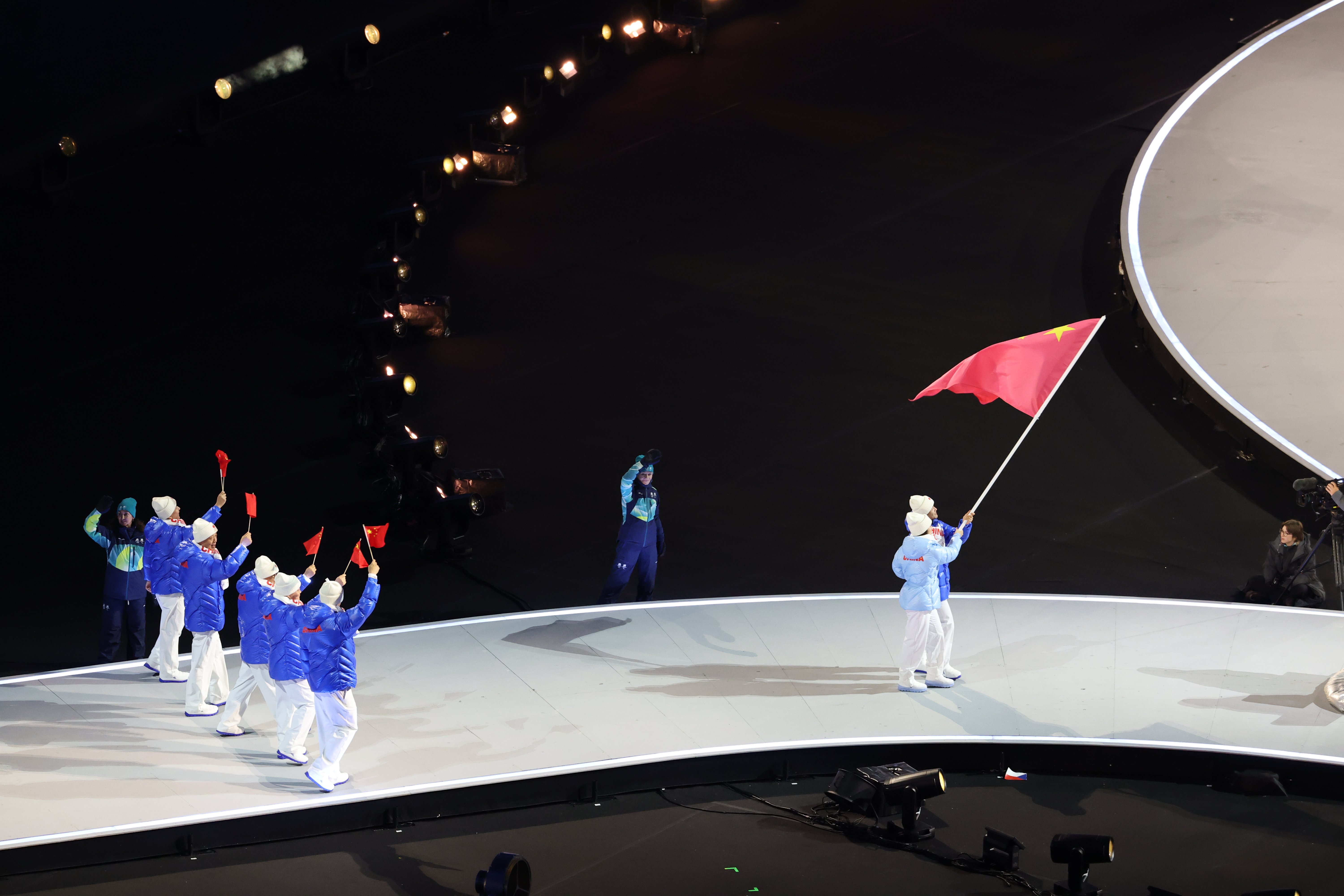 中国代表团入场!五星红旗闪耀冬奥