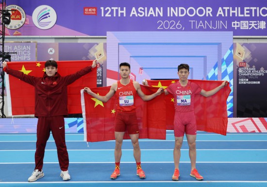 第十二届亚洲室内田径锦标赛6日在天津拉开战幕,中国队成为当日最大赢家,斩获六枚金牌中的三枚,其中男子三级跳远和女子铅球都是包揽前三名。