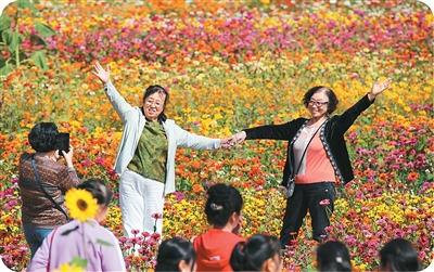 游客在云南省西双版纳傣族自治州景洪市曼沙村赏花游玩。 |